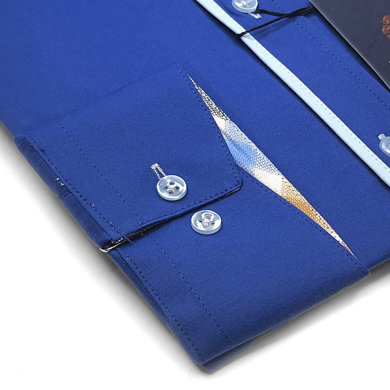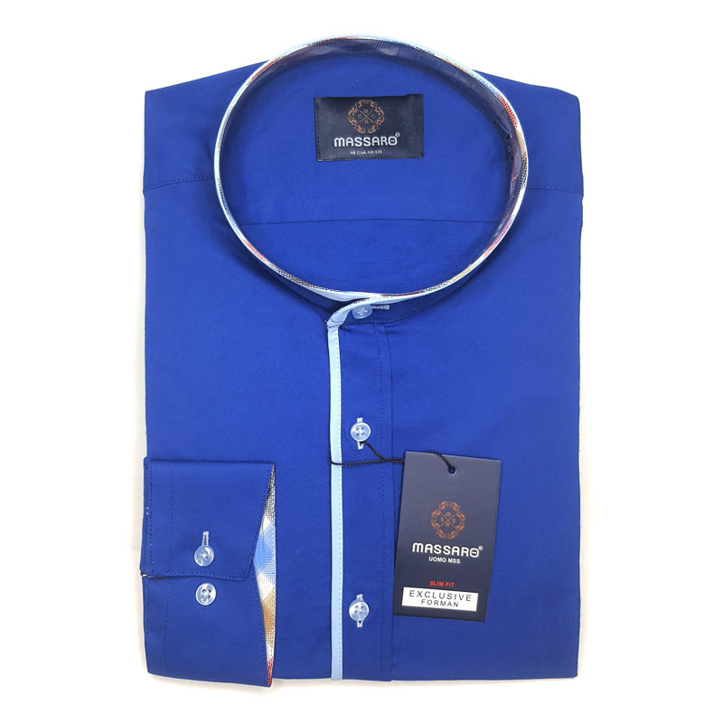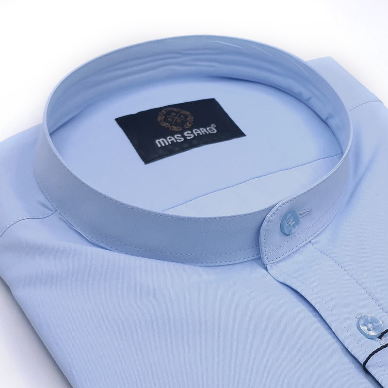 Błękitna Gładka Koszula Slim Fit, Кołnierz ze Stojką