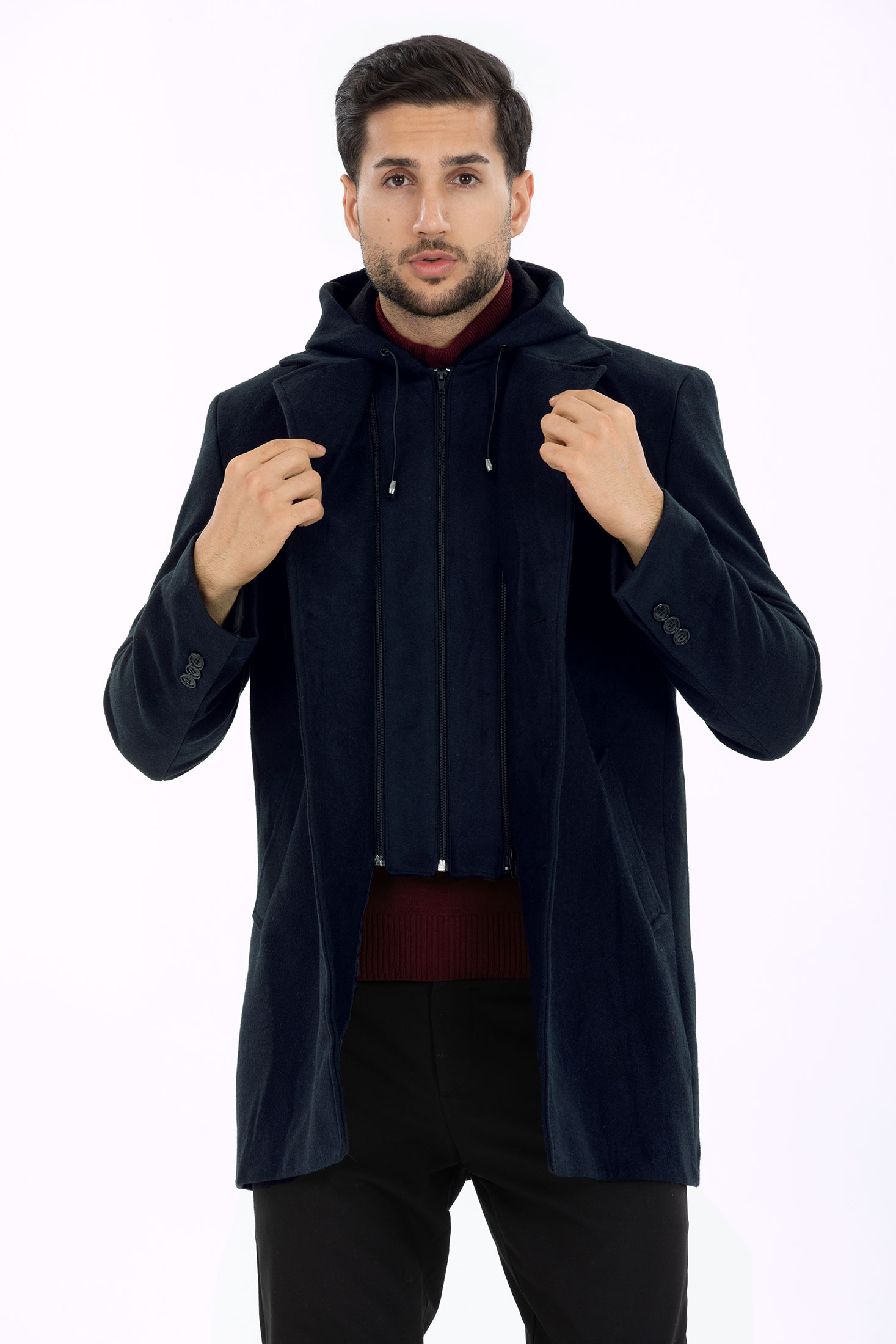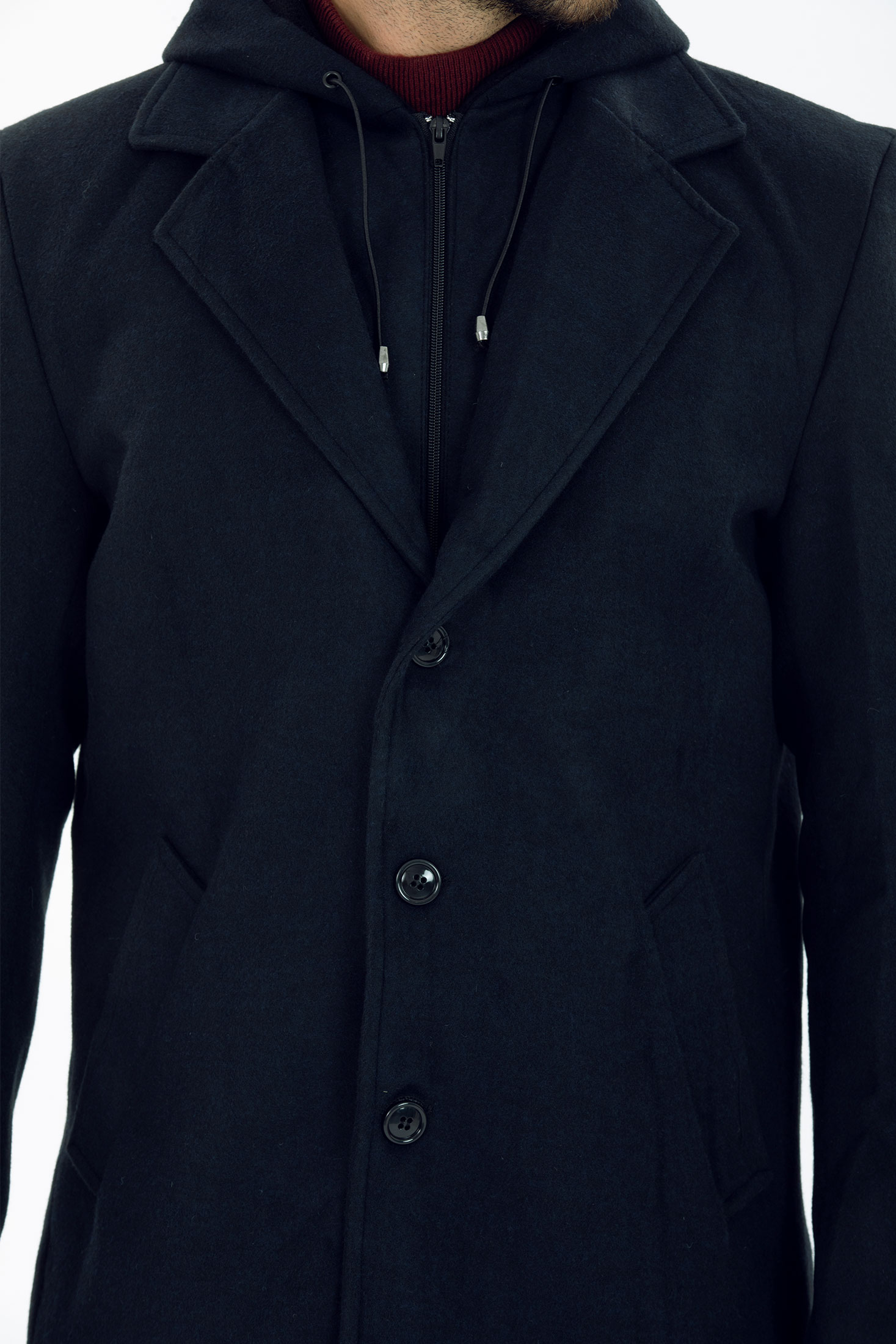 Modny płaszcz z kapturem i oryginalnym zapięciem, w ciemnogranatowym kolorze. Dwie kieszenie z przodu i jedna od środka. Płaszcz taliowany, idealny na jesień, zimę. Nasz sklep prowadzi sprzedaż hurtową, dlatego minimalna ilość produktów w paczce – 5 szt. w różnych rozmiarach od M do XXXL.
