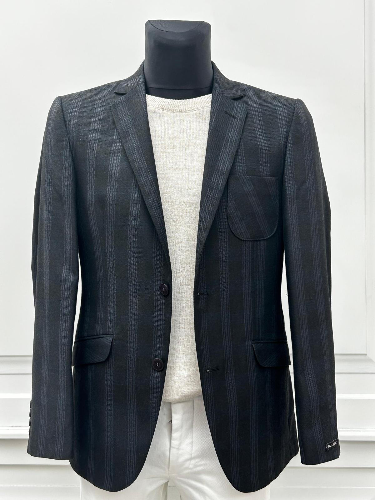 Czarna Marynarka w granatowe pasy Massaro