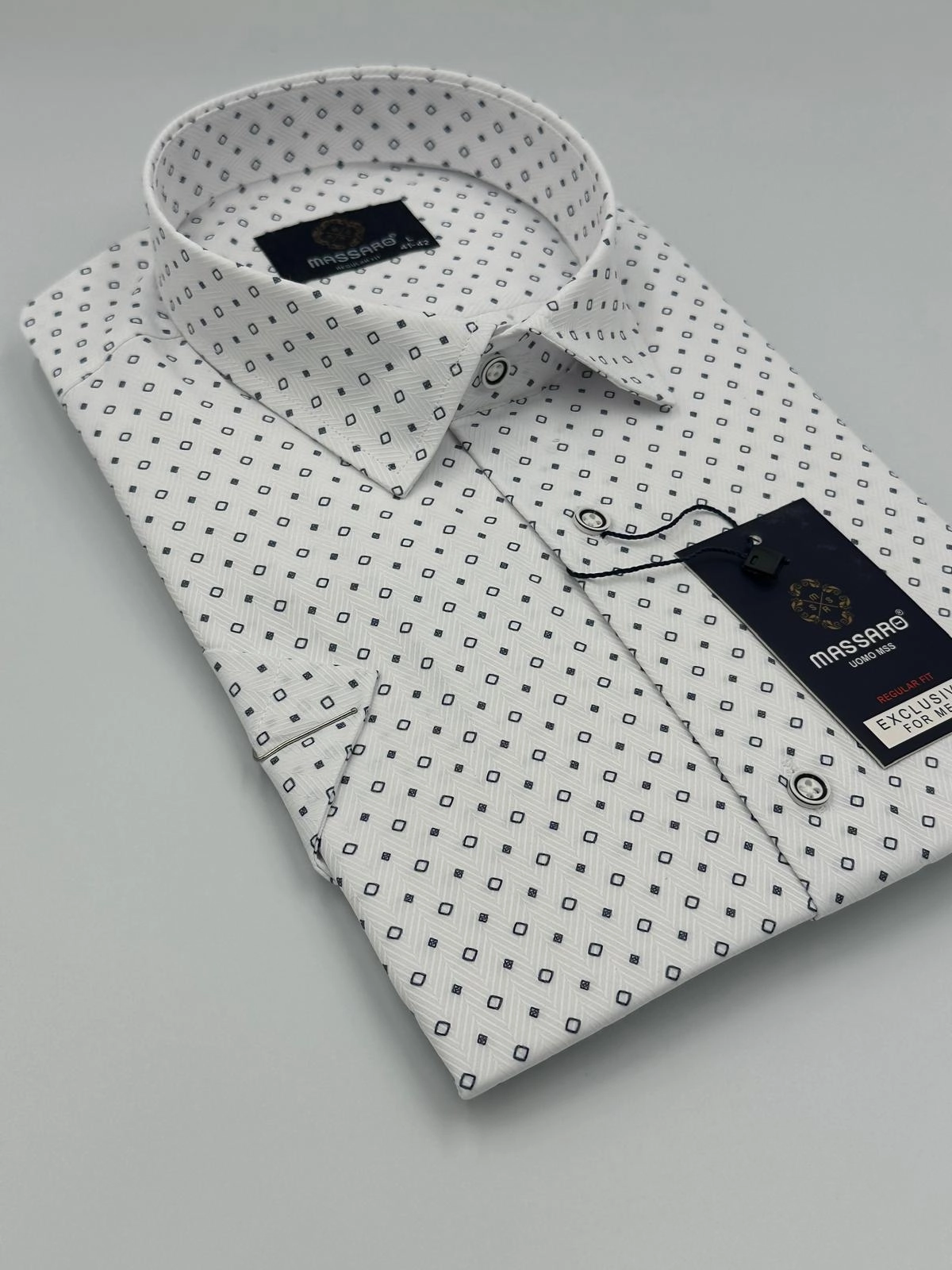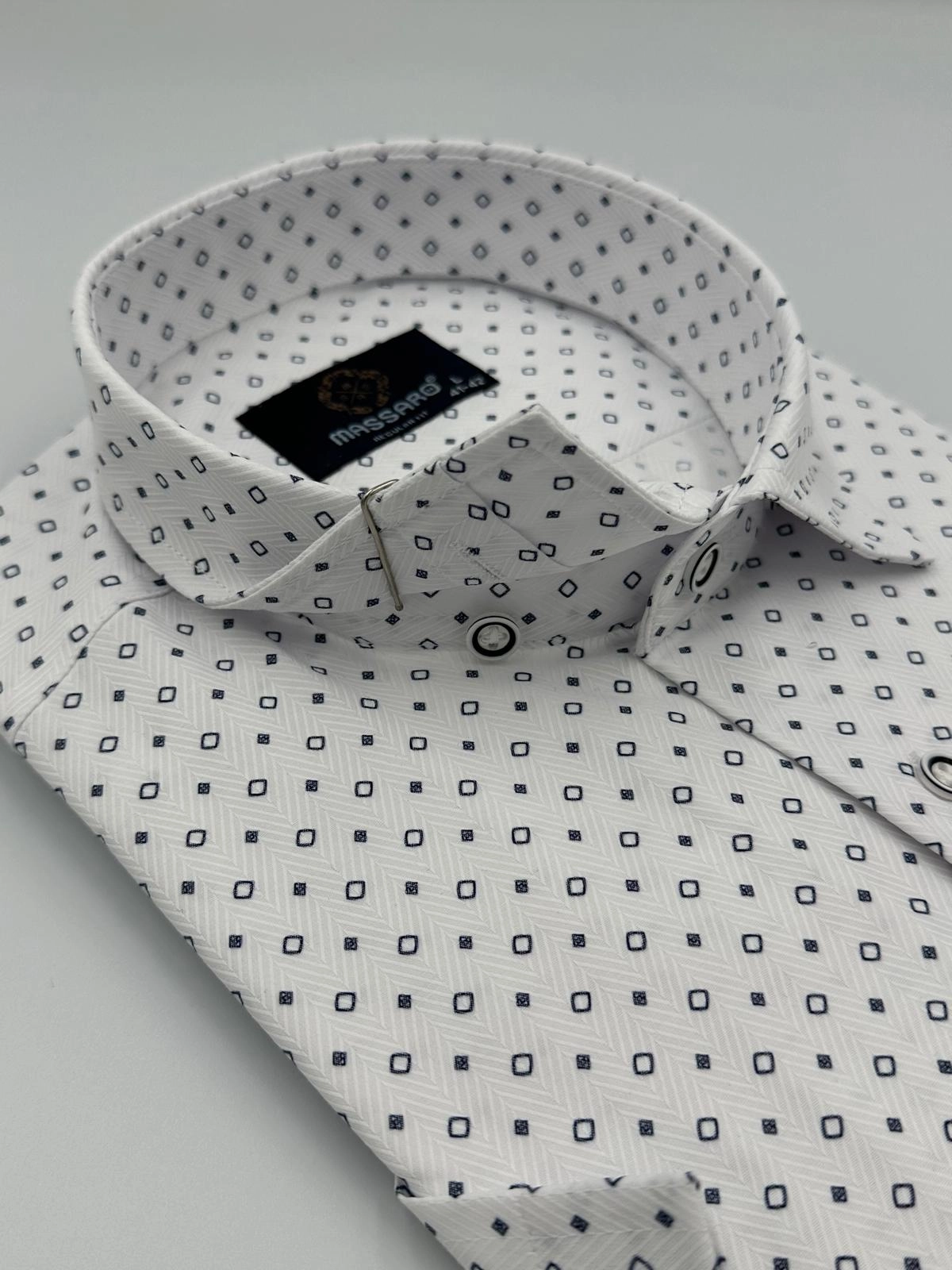 Oddajemy w Państwa ręce wysokiej klasy koszulę męską firmy Massaro. Koszule tej firmy charakteryzuje staranne wykończenie i idealny dobór tkaniny dzięki czemu są delikatne w dotyku i przyjemne dla ciała. Elegancki krój koszuli sprawia, że jest ona idealna zarówno na spotkania biznesowe, jak również do użytku codziennego.